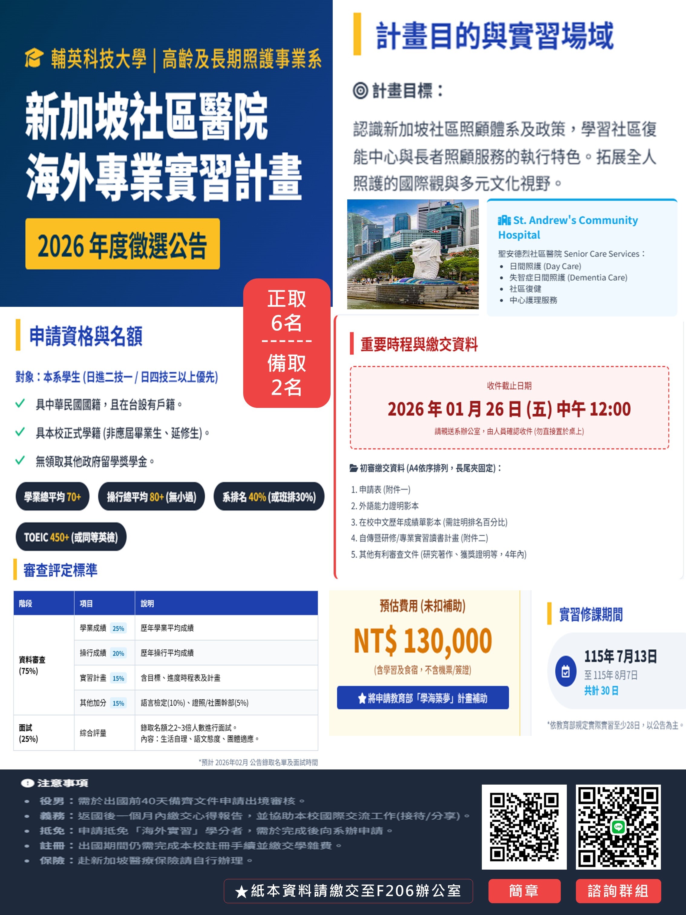 【海外實習】2026新加坡海外專業實習-徵選公告